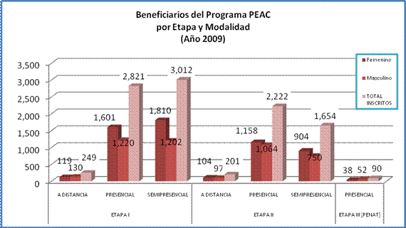 Durante el año 2009, el programa PEAC tuvo una cobertura en 21